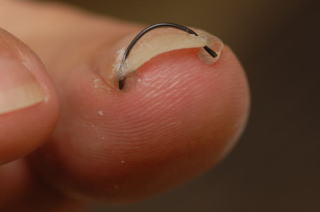 プレート法もワイヤー法も一長一短です、ワイヤー法をするには、爪がある程度伸びていなくてはなりません。巻爪になると爪がなかなか伸びてこない、伸びる前に痛みが増して伸ばす事が困難なものです。